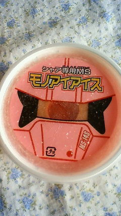 えーと、結局昨日買って食べてみました。シャア専用モノアイアイスをストーブの火にあたりながら(;^_^A